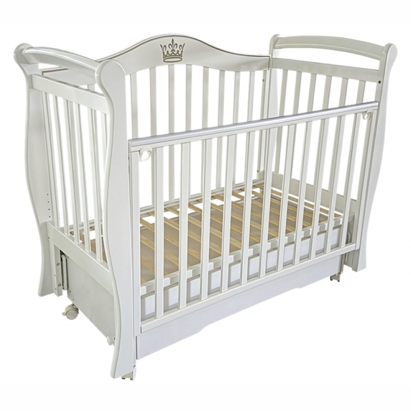 Кроватка сделана из массива березы и МДФ, все детали обработаны и покрыты водорастворимым лаком, что абсолютно безопасно для Вашего ребенка.