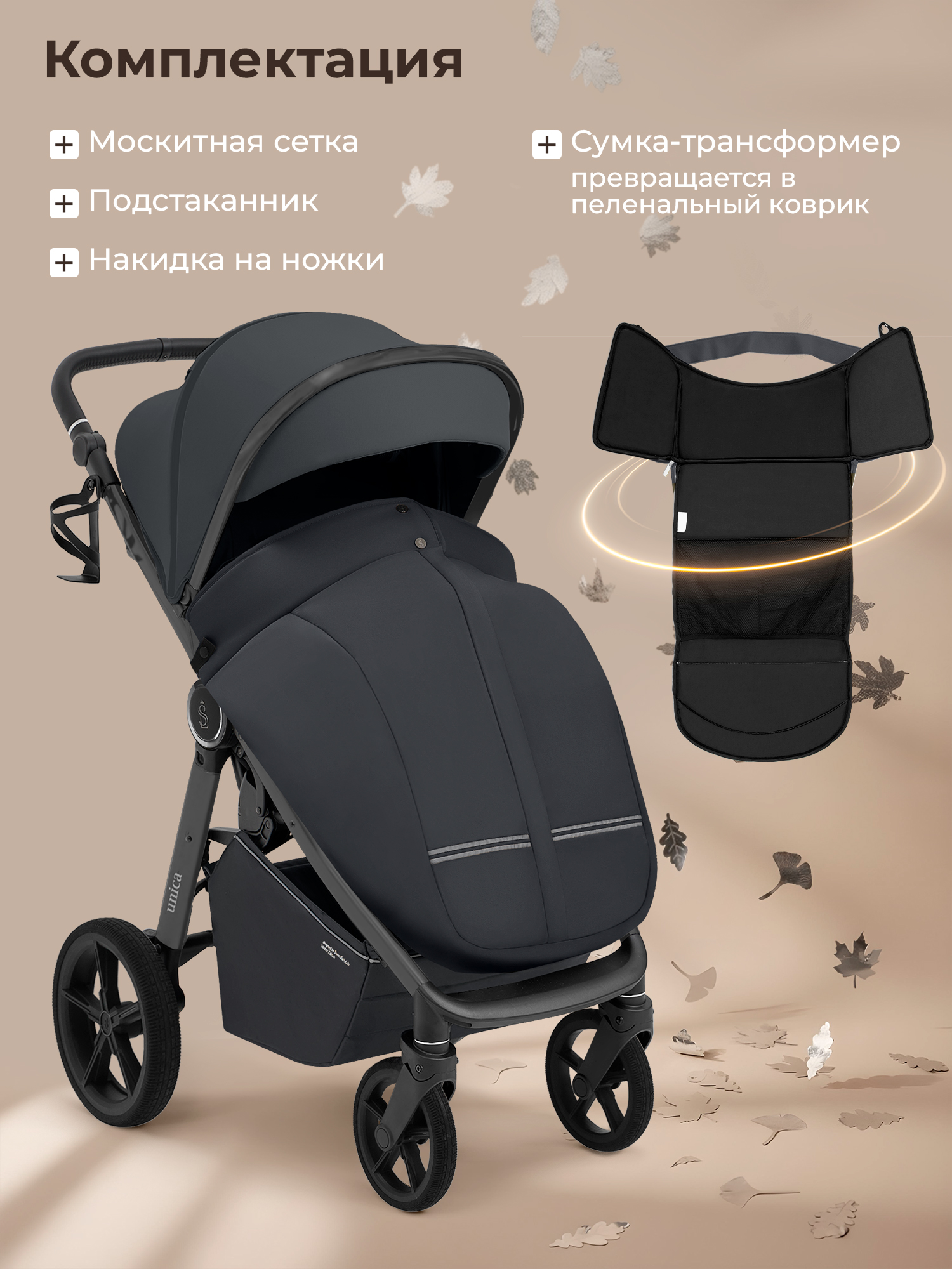 В комплекте с детской коляской SBL Unica входят: москитная сетка, сумка для мамы и фирменный подстаканник.