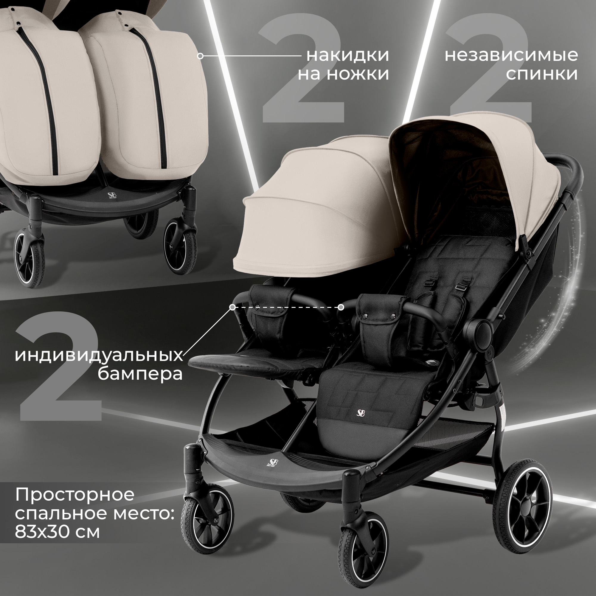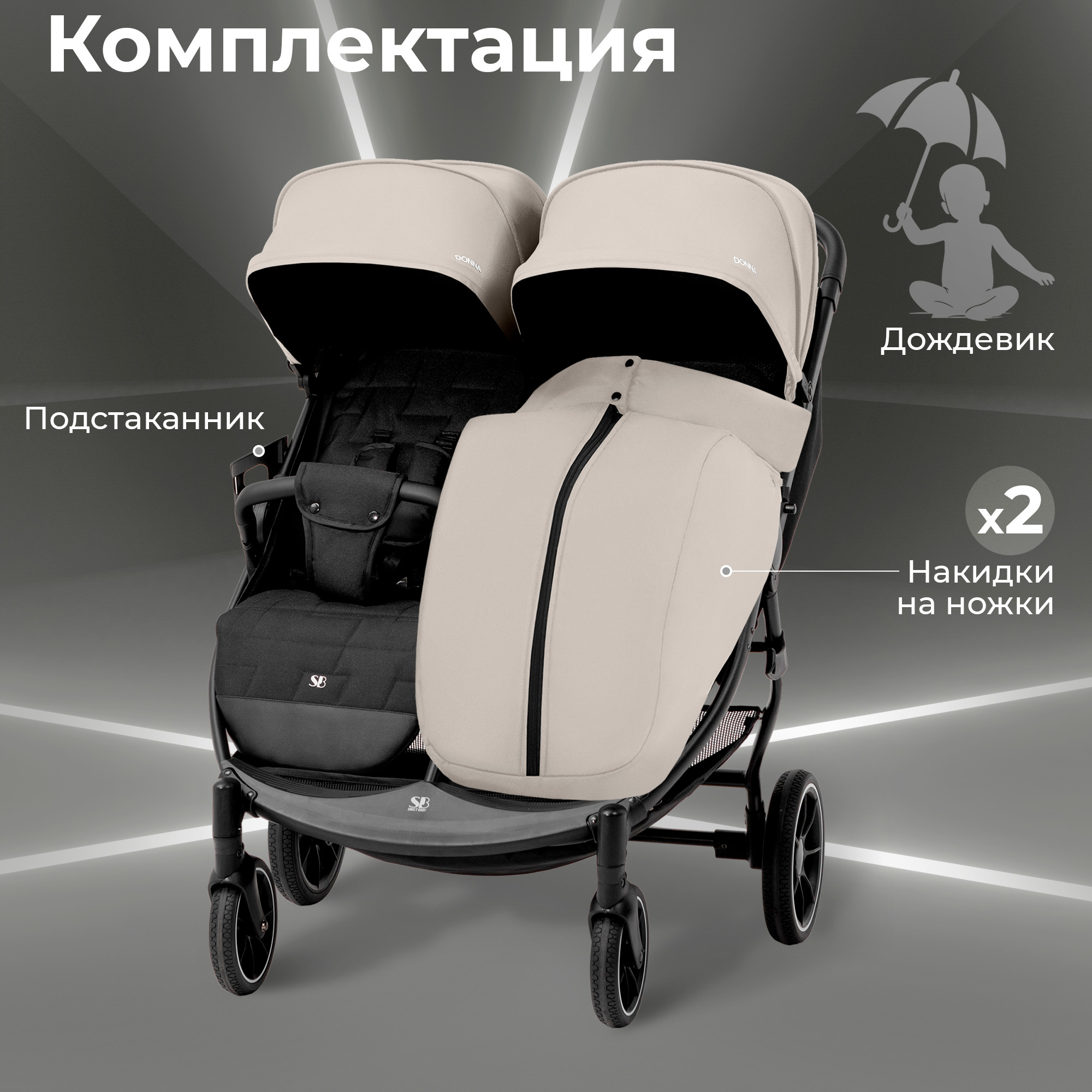 Представляем вам стильную и современную коляску Sweet Baby Donna - идеальный выбор для двойни или близнецов, которую можно использовать круглый год.