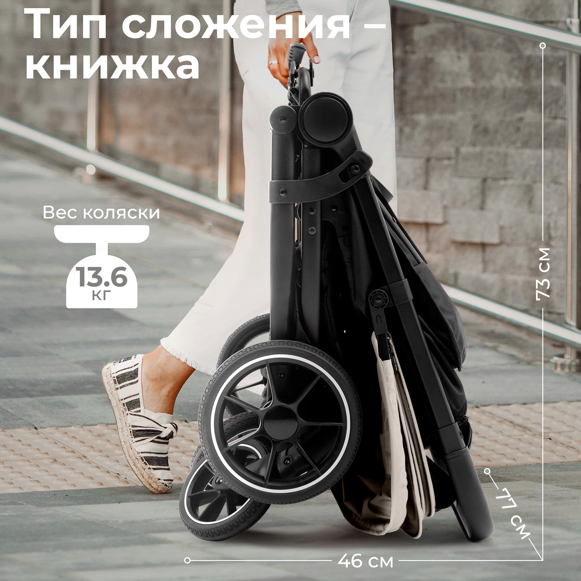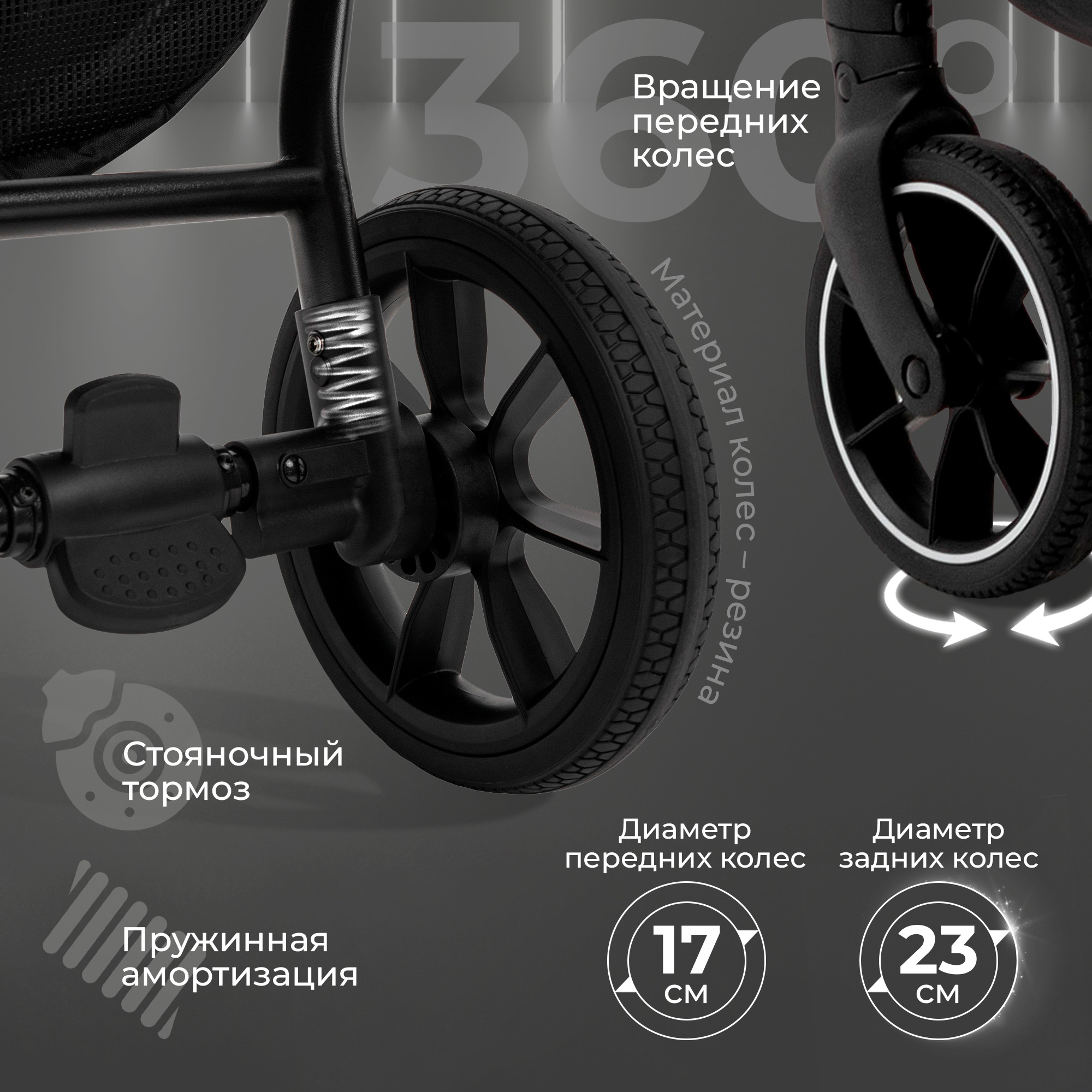 - Большие колеса из резины обеспечивают легкость преодоления любых дорожных неровностей.