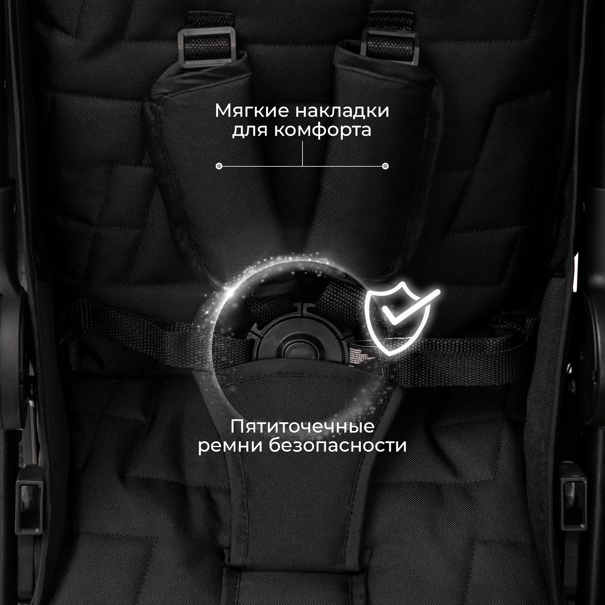 - Пятиточечные ремни безопасности делают поездки максимально безопасными, а смотровое окошко на капоре позволяет вам контролировать детей во время перемещения.