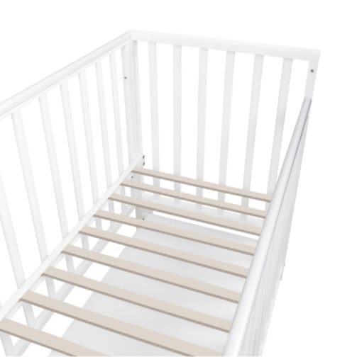 • Съёмные колёса с силиконовым покрытием — обеспечивают кроватке мобильность, облегчая уборку, защитят пол от царапин и следов.