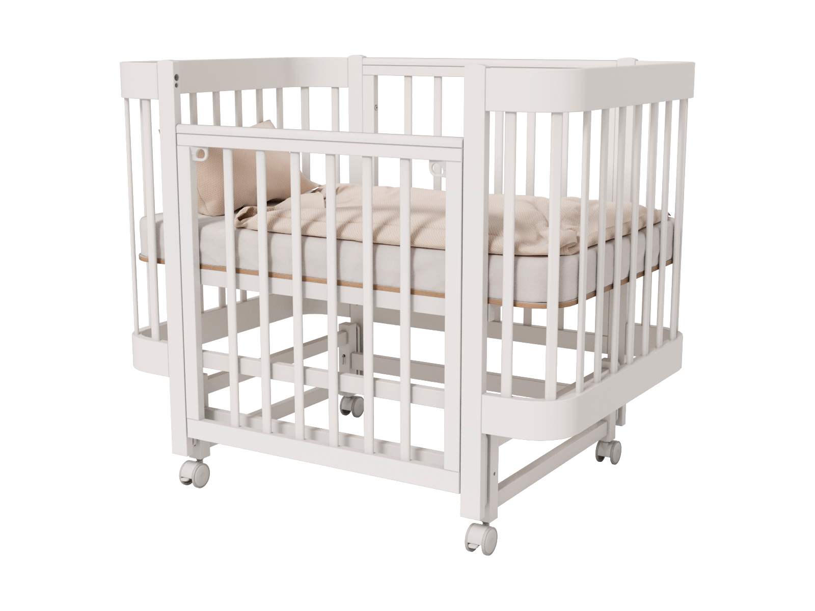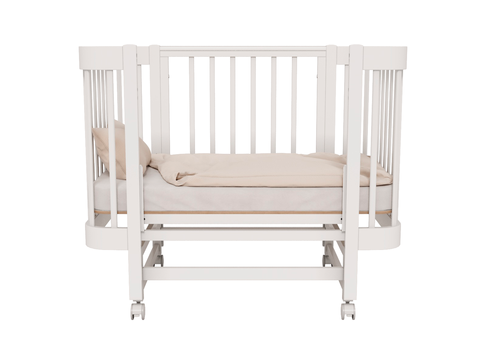 Кроватку можно использовать как приставную к родительской для совместного сна с малышом.
