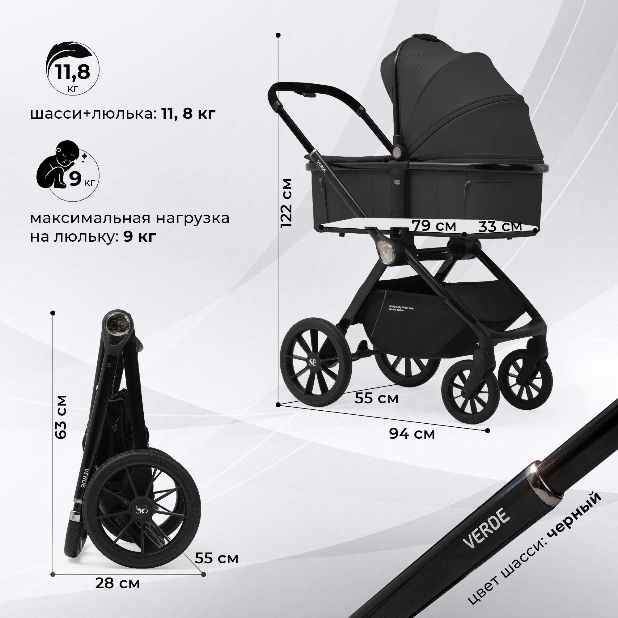 Вес коляски ( с люлькой): 11,8 кг