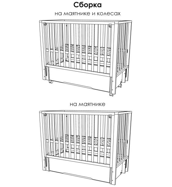 В комплекте с кроватью есть универсальный маятниковый механизм, что позволяет собрать кровать либо с поперечным маятником, либо с продольным, в зависимости от того, какой тип укачивания Вам необходим.