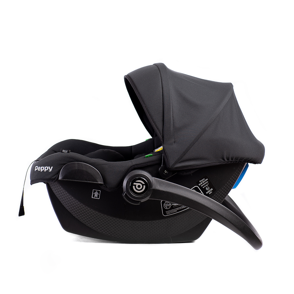 Автолюлька Peppy Rise предназначена для перевозки в автомобиле малышей с рождения до 13 кг (около 12 месяцев). Люлька имеет высокие борта, эргономичную ручку и что очень важно для многих мам – легкий вес. Благодаря этому Вам будет удобно переносить ее вместе с ребенком, и переставлять с рамы коляски сразу в автомобиль. Устанавливается в положении «спиной вперед» с помощью штатных ремней безопасности. На шасси коляски крепится с помощью адаптеров Maxi-Cosi (в комплект не входят).