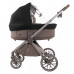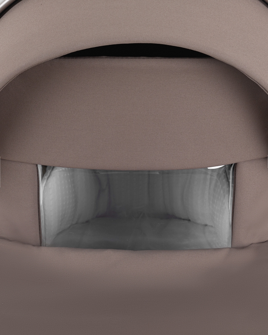 Капор люльки оборудован ручкой для переноски, имеется съемный козырек, дополнительная секция, климатическое окно под молнией в корпусе люльки и в капюшоне.