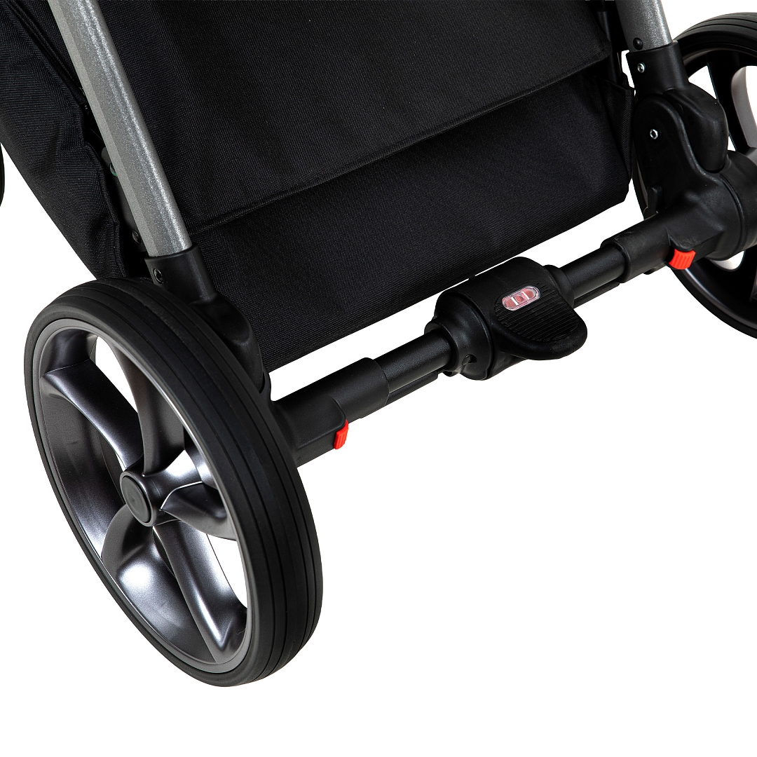 Всесезонные колеса не боятся проколов, перепадов температур и оснащены системой амортизации. Передние колеса являются плавающими с возможностью фиксации в положении "прямо". Технология Smart Absorbtion Systems, которая поглощает вибрации и удары, делает езду плавной и хорошо управляемой. Проходимость тоже на высоте!
