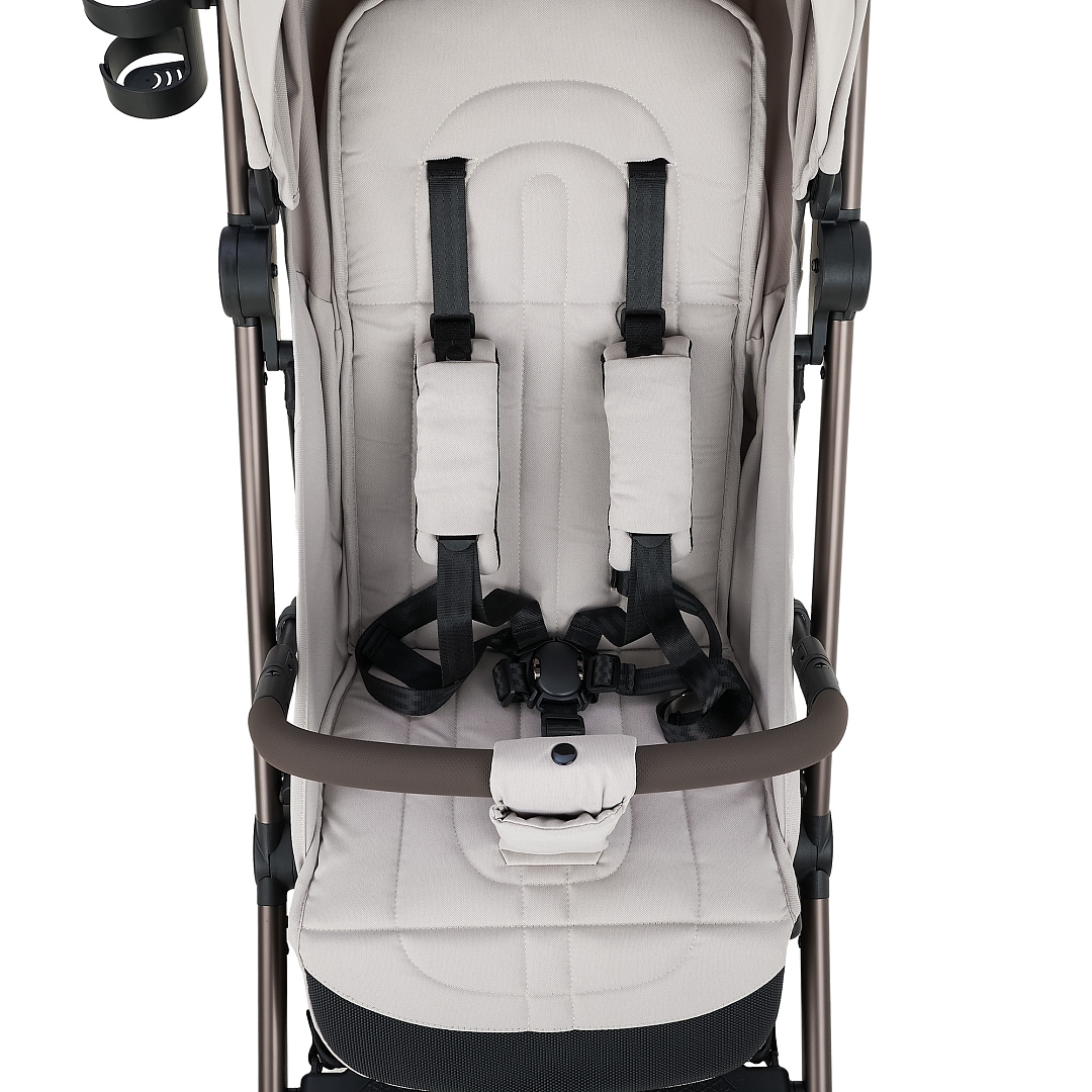 Коляска оснащена мягким бампером, который облегчает доступ к сиденью, и плечевыми ремнями с мягкой подкладкой для защиты нежной кожи ребёнка. Q5 также имеет регулируемую подставку для ног и спинку, которая может быть наклонена до 170 градусов, превращаясь в плоскую поверхность для комфортного сна малыша.