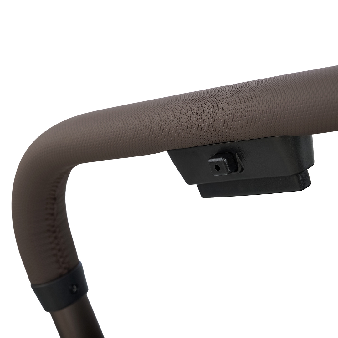 • Отличная маневренность и плавность хода. Шасси имеет мягкую подвеску и шариковые подшипники на каждом колесе. Задние колеса диаметром 15 см. Передние колеса диаметром 13см с амортизацией и функцией блокировки.